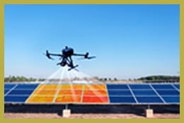 SMART太陽光発電設備点検サービスは、ドローンの赤外線撮影と画像解析によりソーラーパネルの全数点検を自動化、異常個所のみを電気測定するサービスです。オリジナルの解析システムを使用するので、素早く正確に異常個所を抽出できるため、全体の工数削減が可能です。