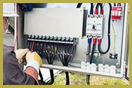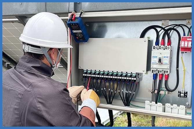異常が発生しているPCS・接続箱、ソーラーパネルを電気測定します。